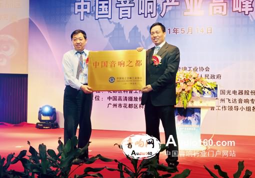 5月14日,在廣州市花都區(qū)科技活動周啟動儀式暨中國音響產(chǎn)業(yè)高峰論壇上,中國電子音響工業(yè)協(xié)會陳立新秘書長宣讀了《關(guān)于授予花都區(qū)“中國音響之都”的決定》;中國電子音響工業(yè)協(xié)會秦志尚會長向區(qū)政府頒發(fā)“中國音響之都”牌匾。這是花都繼“中國皮具之都”、“中華珠寶之都”之后的第三張國字號名片。
