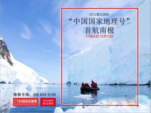 2012年,“中國國家地理號”首航南極活動由德邁國際(DIADEMA)攜手《中國國家地理》(CNG)主辦,與雅登中國共同合作。200名高端戶外人士,共同探索南極,是今年年底旅游界的盛事,這項活動吸引國內外眾多媒體關注的目光。隨著活動的進行,南極旅行的高端地位也將進一步凸顯,成為高端人士關注的焦點。
