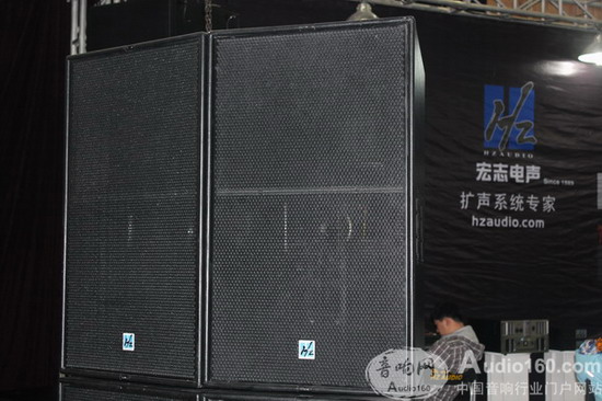 工業還處于很落后的初期階段,公司就已經率先推出了高性能的專業用揚聲器系統。本次廣州演藝設備展,廣州宏志展出了HZ系列專業音箱、功放等產品,另外還有懸掛在展位前的線性陣列產品。我們可以看到,宏志展位主要以專業音箱產品為主,產品涵蓋公司的演出系、線陣系列等。