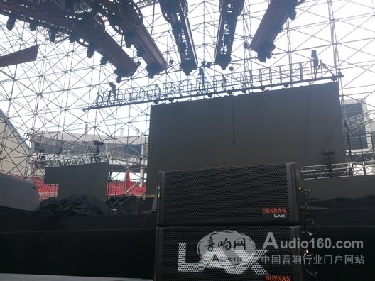 本次演唱會一共用到(LAX SUNNAN) 雙12寸三分頻線性陣列音箱 48只,(LAX SUNNAN)雙8寸線性陣列音箱32只 ,(LAX SUNNAN)雙18寸超低音箱40只,IC218B雙18寸超低音箱16只,(LAX SUNNAN)單18寸超低 4只,整體系統的調試從8月1日開始運行,集中調整了超低頻的指向性。超低的覆蓋角度很廣闊,基本上是一個球體,沒有任何指向性,調音師想做出來一個超低的指向,從而達到改變超低的覆蓋角度,遵從能量守恒的原理,把原來分散到各個方向的能量集中到觀眾席。那么到底通過什么方法達到這種效果呢?其實是在每一組的超低頻都做了延時,通過這種技術手段,改變了超低的指向性,使超低頻的聲音感覺更加震撼。