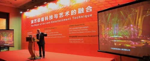 德國專業燈光音響及演藝科技協會(VPLT)前CEO、悅吉影音設備(上海/北京)公司首席技術官弗蘭•馮•霍芬做“歐洲的動態舞臺設計與應用”專題演講