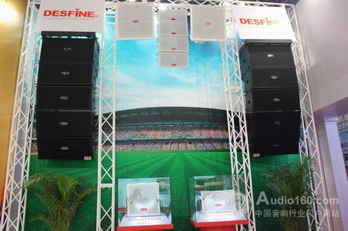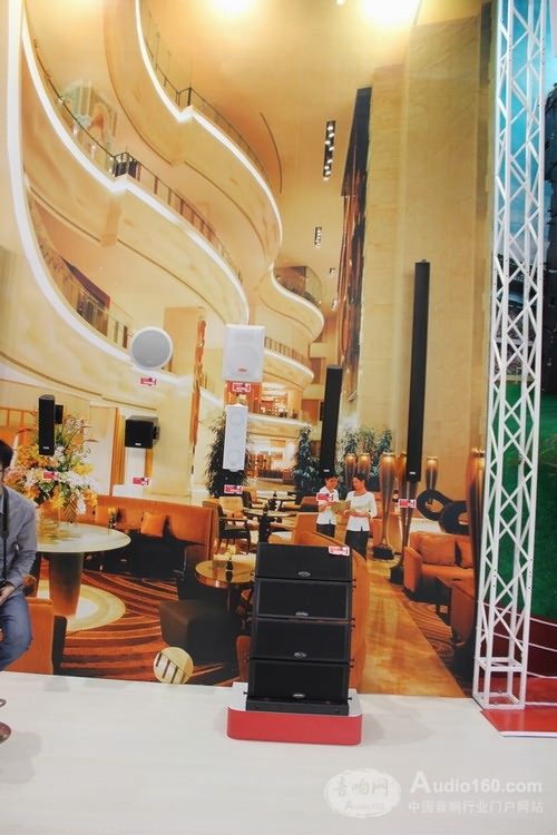 此次參展,迪斯的展位設(shè)計頗為壯觀,整體好似宮殿,按照產(chǎn)品應(yīng)用范圍的不同,迪斯分別展示了體育場館、酒店、影劇院、戶外擴聲等類別的產(chǎn)品,分區(qū)明顯,非常方便客戶尋找需要的產(chǎn)品。每個分區(qū)都以圖片加產(chǎn)品展示的方式帶給客戶視覺與聽覺的雙重沖擊。在劇院應(yīng)用區(qū),最新推出的DQ86專業(yè)劇院系列產(chǎn)品采用了全新美學設(shè)計理念,是內(nèi)在高品質(zhì)揚聲器與外在優(yōu)美流體外觀的有機結(jié)合體。其性能、應(yīng)用特色鮮明,同時它的箱體設(shè)計緊湊、小巧,方便隱藏式安裝。