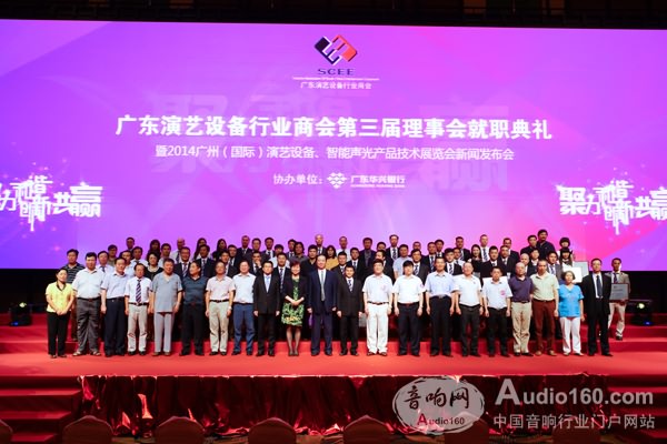2013年7月31日,廣東演藝設備行業商會第三屆理事會就職典禮在廣州市番禺長隆國際會議中心隆重舉行。此次就職典禮作為商會換屆后的第一次盛會,得到了各社會單位和行業代表的熱烈響應和參與,廣東華興銀行廣州分行作為協辦單位也對本次活動提供了傾情贊助。
