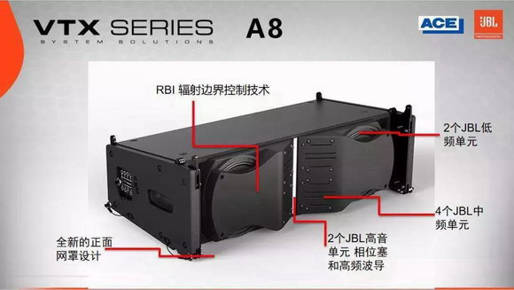 JBL專業揚聲器憑借70多年的技術沉淀、已經獲得世界眾多音樂人、專家組織的認可。JBL VTX系列是JBL Professional具有革命性的產品,現推出新品JBL VTX A8 & B18,進一步豐富了JBL VTX系列的產品線,適用于中小型租賃、巡演、企業音視頻及藝術表演等應用場景的緊湊型解決方案。