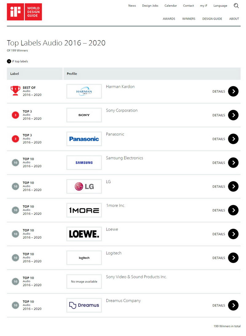 近日,有“設計界奧斯卡”之稱的iF設計獎首次推出iF World Design Index (世界設計指數),表彰在各自領域或地區始終保持領先地位的設計師,公司和團隊。中國原創耳機品牌1MORE萬魔在音頻類目中進入TOP10行列,是唯一上榜的中國音頻品牌。