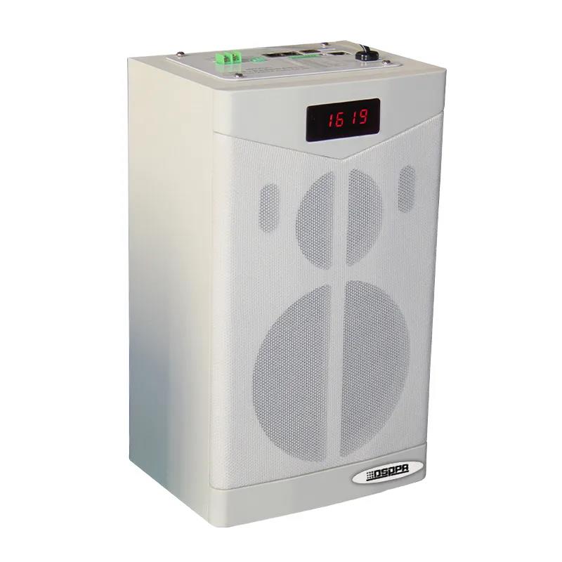 迪士普網絡化室內音箱是一款由網絡化終端處理器結合高保真揚聲器整體化設計而成的網絡化室內音箱,音質接近CD級,讓考生能夠聽清楚每一個發音。同時,這款音箱還具有數模雙備份功能,當斷網斷電時它將自動切換到模擬信號,繼續播放聽力考試,保證考試的順利進行。