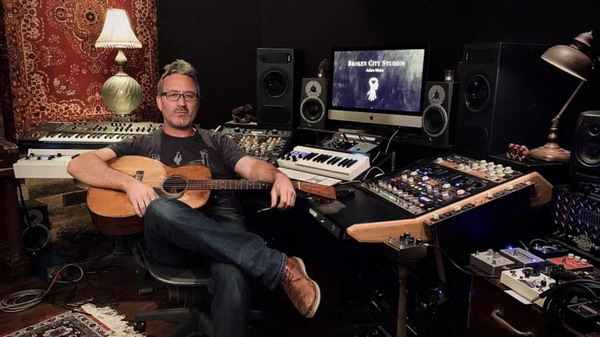 執行音樂制作人 Adam Watts 在他位于洛杉磯的工作室中