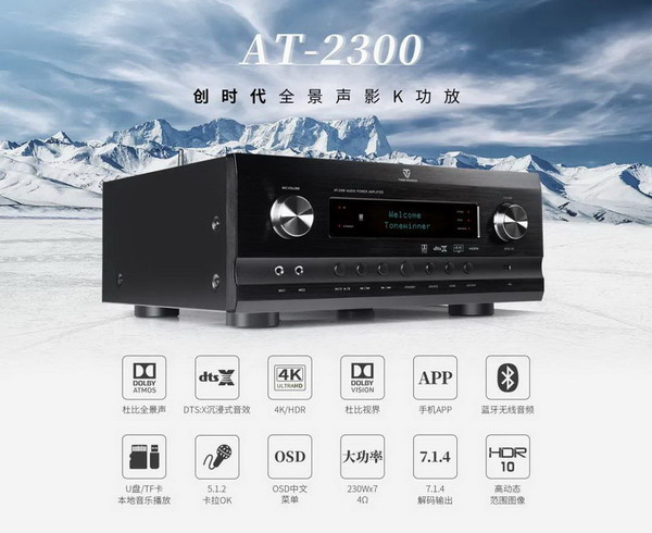 而家庭影院領域,更是突破了國內影音技術瓶頸,推出全景聲影K產品,如AT-2300、AD-7300HD、AT-200、HD-3100等,極具競爭力的產品,多項功能是創新設計,無論是技術還是功能上,都領先于國內同行,也廣受市場好評。