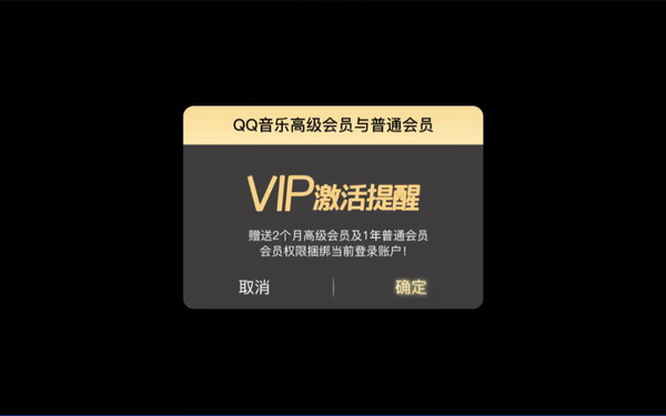 1、VIP會員領取:騰訊音樂資源上線后,贈送兩個月的高級會員及1年的普通會員。高級會員支持全部超高清歌曲。普通會員,可免費試聽80%曲庫,VIP高清歌曲可試聽60秒。