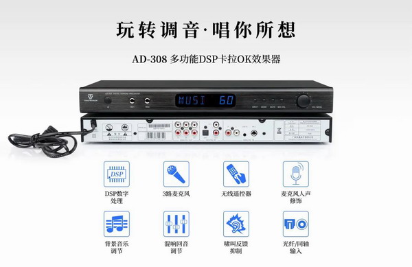 當前熱銷的天逸AD-208、AD-308多功能DSP卡拉OK效果器、AD-200K,AD-300K多功能卡拉OK功放等產品將繼續扛起這面英雄的旗幟,長期征戰于中國卡拉OK市場。同時,DSP數字處理、嘯叫抑制、話筒獨立效果、EQ數字均衡調節等先進音頻處理技術的運用,將進一步提升用戶對效果追求的滿意度,提高產品專業度。