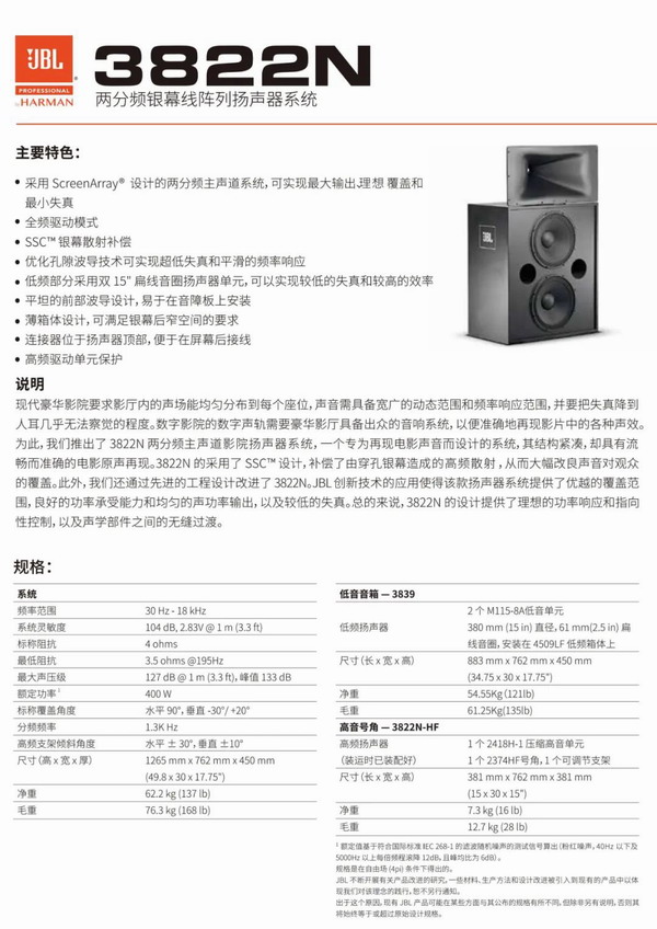 以我們JBL 38系列的新品 - 3822N為例,顧客問怎么理解這款音箱的頻率范圍30Hz-18kHz?