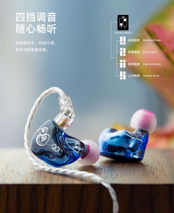 采用三個動鐵單元精心調教,高頻順滑,中頻飽滿,低頻能量充沛,同時使用了旗艦V14相同的金屬聲學嘴V3II最大的特點在于音色的變化性,四個調音模式,即標準調音、氛圍感強、高靈敏度、人聲靚麗,在適應不同的需求同時又不會讓音樂本身的質感和情感有所缺失。