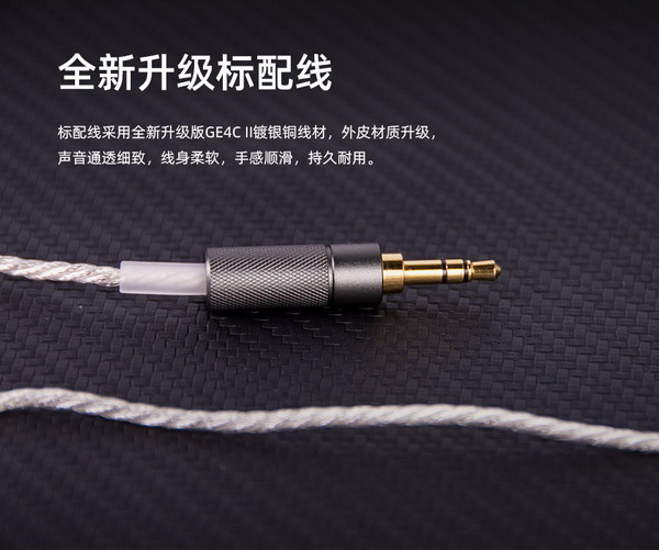 標配線采用全新升級版GE4C II鍍銀線材,外皮材質升級,線身柔軟,手感順滑,使用持久不易變色。