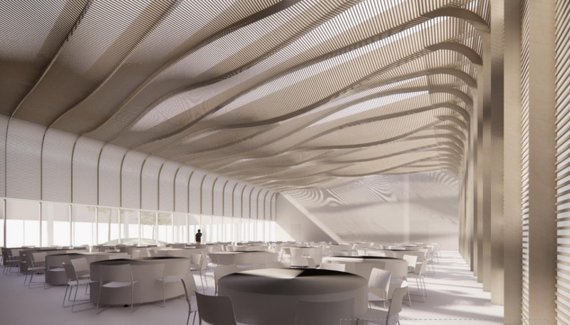 黃海森林公園位于江蘇省東臺市,由海林片區和海濱片區組成,總面積達到了6.8萬畝,是華東地區規模最大的人造生態林園。位于森林公園核心區東側的黃海森林公園國際會議中心,顏值爆表、氣場十足。設計以"飄葉"為主題,呼應黃海森林公園的自然風貌,總建筑面積達到了1.8萬平方米。借助系統思維,以會務功能為核心,集合了報告廳、宴會廳、會議室、酒吧、書吧等多種類型場所,將建筑、景觀、旅游一體化通盤考慮的整體設計,以此打造高品質、彈性發展的國際化會議綜合體,塑造黃海森林公園的自然生態新名片。