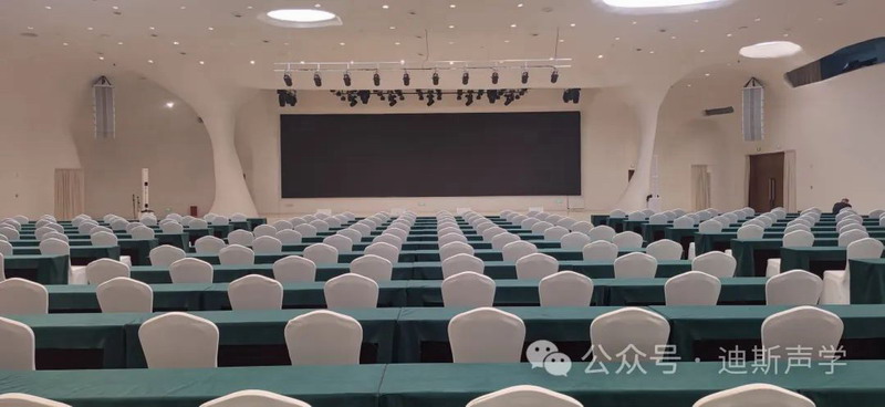 郴州十畝溫泉度假酒店的宴會廳、培訓室和會議室擴聲系統使用了DESFINE迪斯品牌產品,宴會廳的主擴聲采用了DS98系列線陣列音箱,用以覆蓋整個觀眾區,另搭配了DM、DF系列音箱用作輔助,更好滿足聲場均勻度及語言清晰度要求。驅動部分采用了MD及MT系列數字功放,功放音箱功率配比合理,確保系統安全穩定運行。控制處理部分采用DESFINE迪斯配套音頻處理設備。