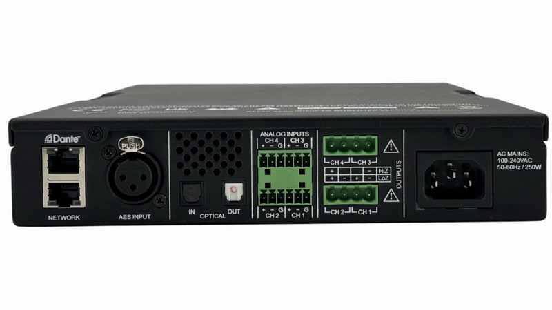 輸出功率@4Ω/8Ω/70V/100V*所有通道均驅動: 125W LoZ / 250W HiZ