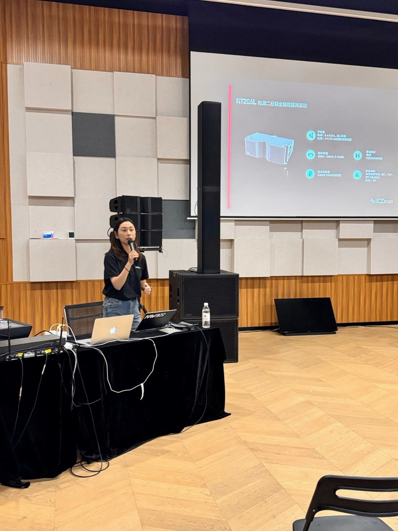 此外,現場還分享了EAW與Powersoft的核心技術:EAW NT206L 有源二分頻線陣列揚聲器憑借五大核心技術實現小體積高聲壓輸出,成為流動演出的理想選擇;而AC6 自適應音柱依托智能算法,可精準匹配不同場地聲學特性。Powersoft則以高效數字功放模塊和先進D類放大器設計,實現穩定高功率輸出,其功率因數校正、智能軌道管理等專利技術,進一步提升了放大器效率。